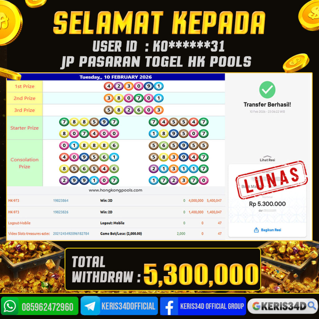 Selamat Kepada Member Yang Berhasil Mendapatkan Jackpot Dipermainan Togel Hk pools Hari Ini, Berikut Bukti SS Jackpot Member Di Situs KERIS34D