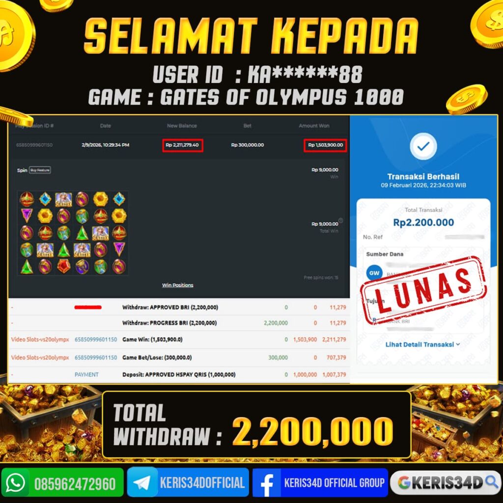 Setiap hari, member KERIS34D berhasil meraih jackpot besar dari berbagai provider slot ternama yang kami sediakan, seperti Pragmatic Play, Habanero, PG Soft, dan masih banyak lagi. Kami secara rutin menampilkan bukti screenshot atau rekapan kemenangan yang berhasil diraih, mulai dari kemenangan ratusan ribu hingga puluhan juta rupiah. Semua slip kemenangan ini kami hadirkan untuk membuktikan bahwa di KERIS34D, peluang menang itu nyata