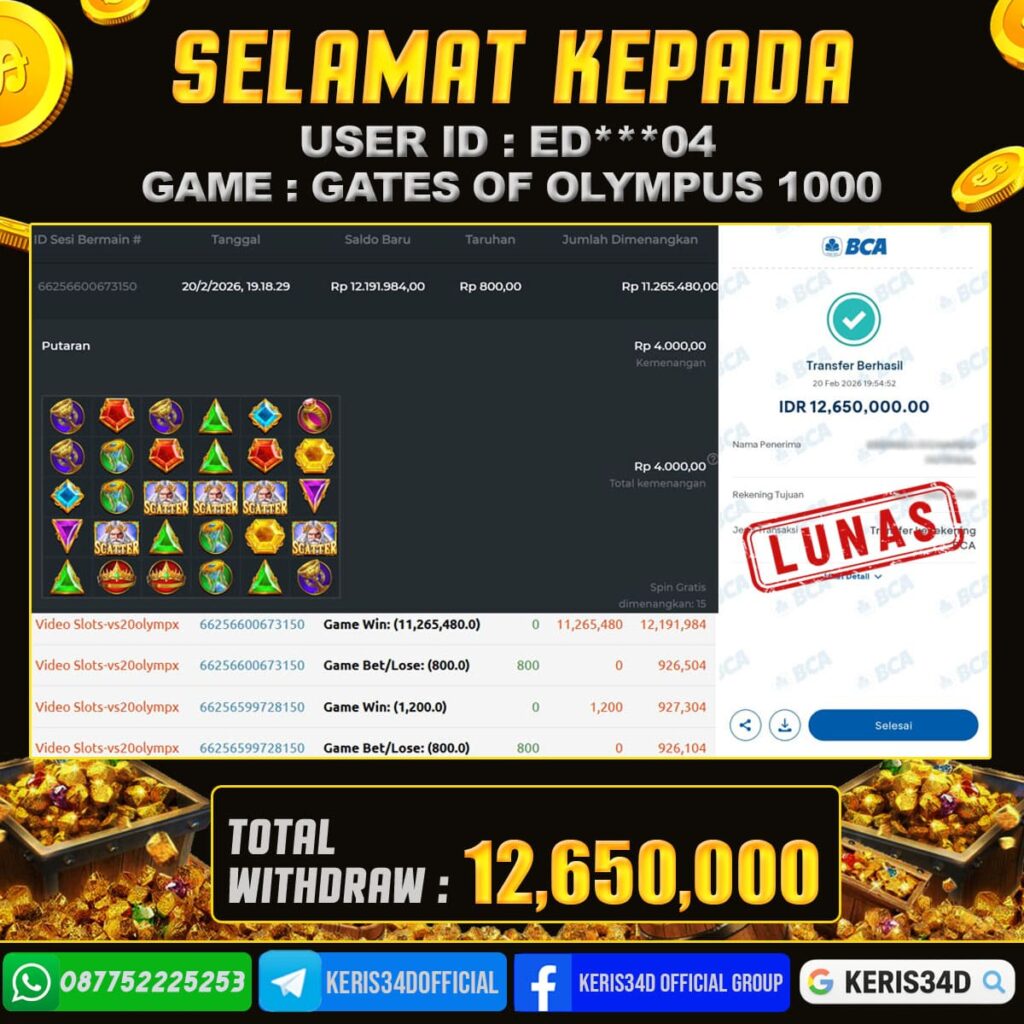 KERIS34D dikenal sebagai situs terpercaya yang selalu menghadirkan pengalaman bermain slot online yang aman, fair, dan berlisensi resmi. Di sini, kami tidak hanya sekadar memberikan janji, tapi bukti nyata berupa slip kemenangan yang dapat Anda lihat secara langsung.