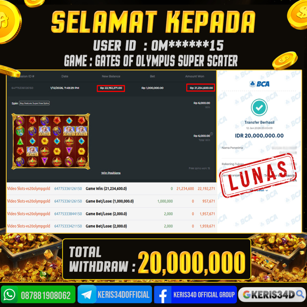 KERIS34D dikenal sebagai situs terpercaya yang selalu menghadirkan pengalaman bermain slot online yang aman, fair, dan berlisensi resmi. Di sini, kami tidak hanya sekadar memberikan janji, tapi bukti nyata berupa slip kemenangan yang dapat Anda lihat secara langsung.