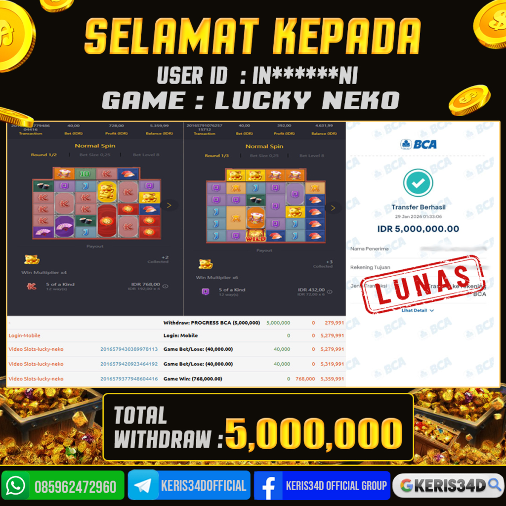 JACKPOT SLOT GACOR MAIN LUCKY NEKO 29 JANUARI 2026