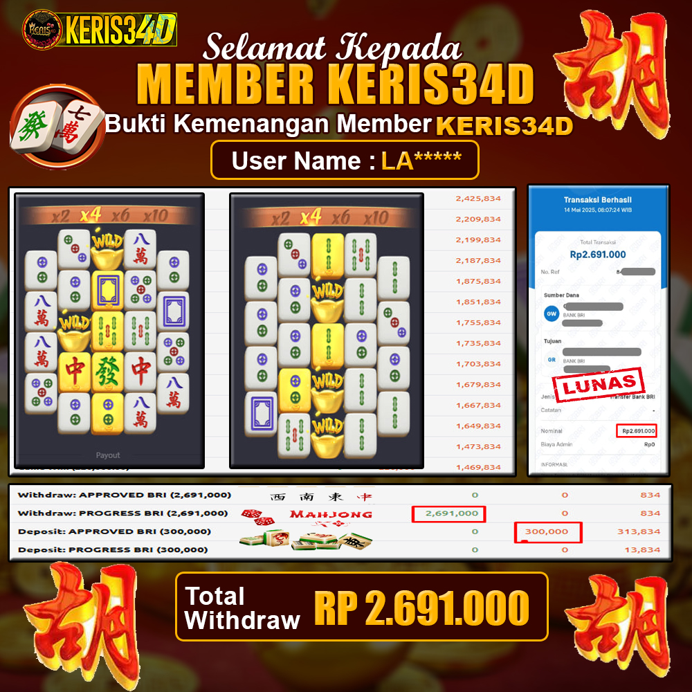 JACKPOT SLOT GACOR MAIN MAHJONG WAYS 14 MEI 2025, Jackpot Slot Gacor, Kemenangan Slot, Bukti Kemenangan Slot, Kemenangan PGSOFT, Menang Slot online, Slot Gacor, Situs Aman Terpercaya, WD Berapapun Pasti DI Bayar Tuntas, Maxwin Slot Online.