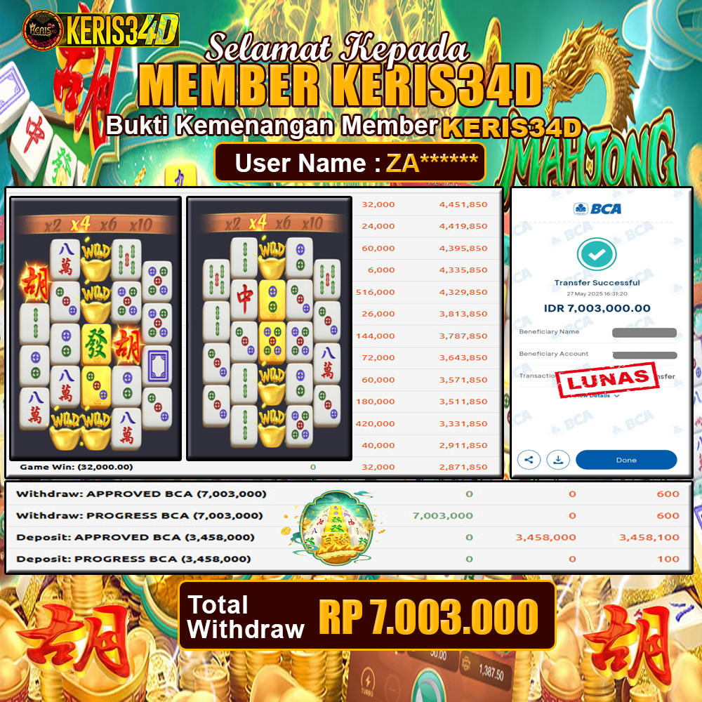 TOTAL KEMENANGAN : Rp. 7.003.000