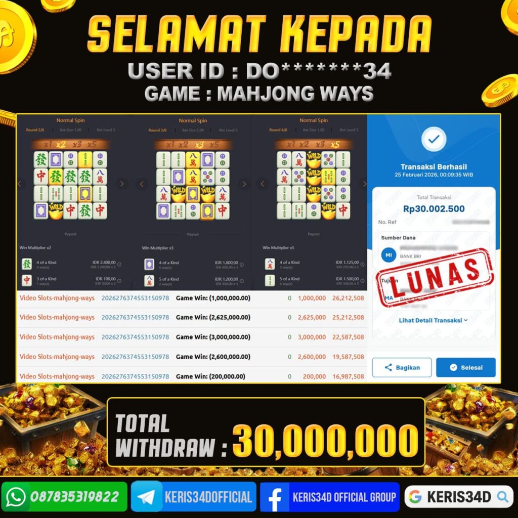 JACKPOT SLOT GACOR MAIN MAHJONG WAYS 25 FEBRUARI 2026, Jackpot Slot Gacor, Kemenangan Slot, Bukti Kemenangan Slot, Kemenangan PGSOFT, Menang Slot online, Slot Gacor, Situs Aman Terpercaya, WD Berapapun Pasti DI Bayar Tuntas, Maxwin Slot Online.