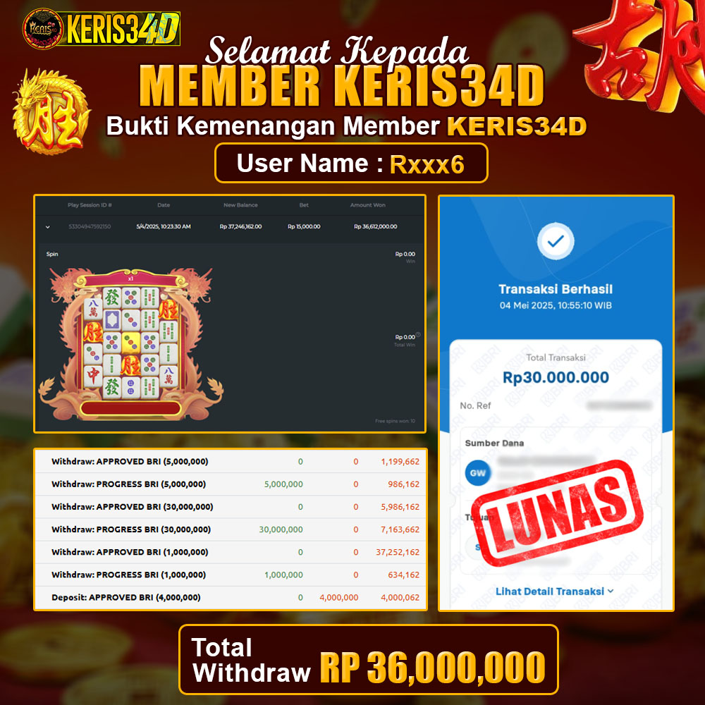 TOTAL KEMENANGAN : Rp. 36.000.000