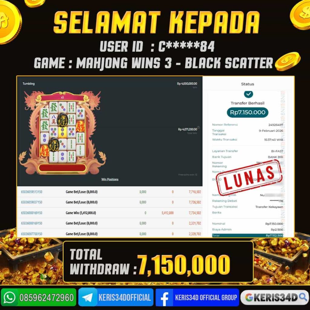 JACKPOT SLOT GACOR MAIN MAHJONG WINS 3 BLACK SCATTER 09 FEBRUARI 2026, Jackpot Slot Gacor, Kemenangan Slot, Bukti Kemenangan Slot, Kemenangan PRAGMATIC, Menang Slot online, Slot Gacor, Situs Aman Terpercaya, WD Berapapun Pasti DI Bayar Tuntas, Maxwin Slot Online.