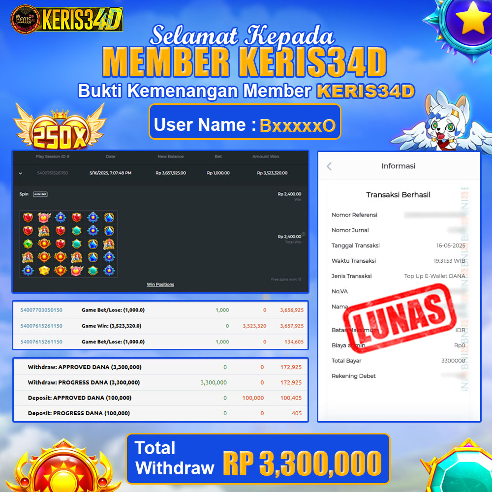SSetiap hari, member KERIS34D berhasil meraih jackpot besar dari berbagai provider slot ternama yang kami sediakan, seperti Pragmatic Play, Habanero, PG Soft, dan masih banyak lagi. Kami secara rutin menampilkan bukti screenshot atau rekapan kemenangan yang berhasil diraih, mulai dari kemenangan ratusan ribu hingga puluhan juta rupiah. Semua slip kemenangan ini kami hadirkan untuk membuktikan bahwa di KERIS34D, peluang menang itu nyata