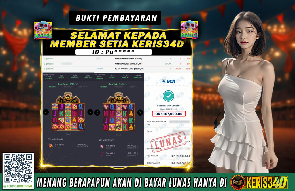 Setiap hari, member KERIS34D berhasil meraih jackpot besar dari berbagai provider slot ternama yang kami sediakan, seperti Pragmatic Play, Habanero, PG Soft, dan masih banyak lagi. Kami secara rutin menampilkan bukti screenshot atau rekapan kemenangan yang berhasil diraih, mulai dari kemenangan ratusan ribu hingga puluhan juta rupiah. Semua slip kemenangan ini kami hadirkan untuk membuktikan bahwa di KERIS34D, peluang menang itu nyata