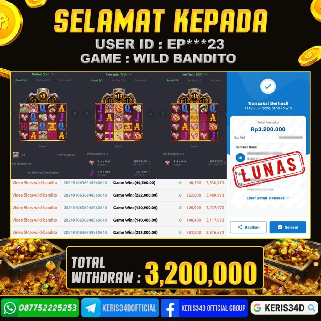 JACKPOT SLOT GACOR MAIN WILD BANDITO 21 FEBRUARI 2026