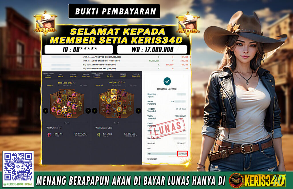 KERIS34D dikenal sebagai situs terpercaya yang selalu menghadirkan pengalaman bermain slot online yang aman, fair, dan berlisensi resmi. Di sini, kami tidak hanya sekadar memberikan janji, tapi bukti nyata berupa slip kemenangan yang dapat Anda lihat secara langsung.